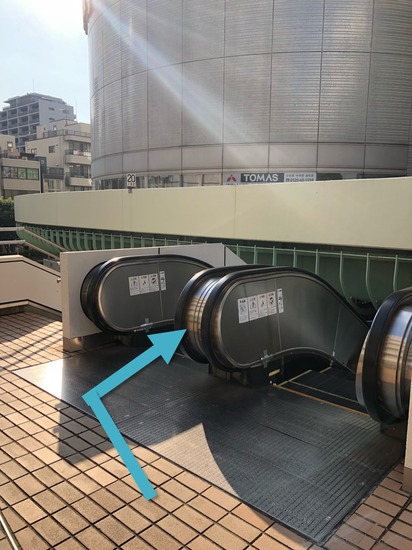 ③そのまま道なりに進み、エスカレーターで1階に下ります。
