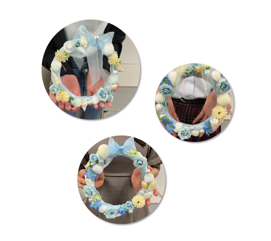 夏色リースを作りました 2024-08-07 イベント KG高等学院 大宮西口 ハンドメイドイベントとして 生徒さんと一緒に「夏色リース」を作りました ライトブルーのカラーリングとオーガンジーリボンが爽やかですね 選ぶ花材やリボンの結び方にそれぞれの個性が光ります 一覧へ