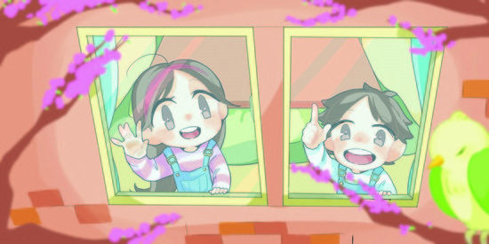 1面右上のイラストは 学びリンク・□さん →4面。 今回は「春の訪れ、桃の花」です。