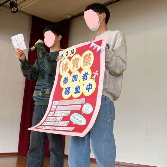 体育祭実行委員には、ステージに上がっていただき、体育祭のお知らせをしてもらいました!