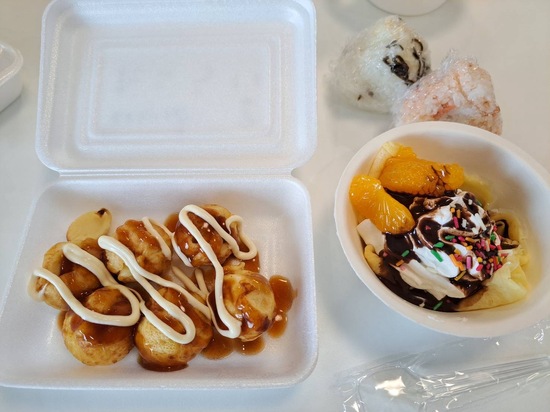 たこ焼きにはいろいろな具材を、おにぎりも種類豊富に準備して、みんなでワイワイ