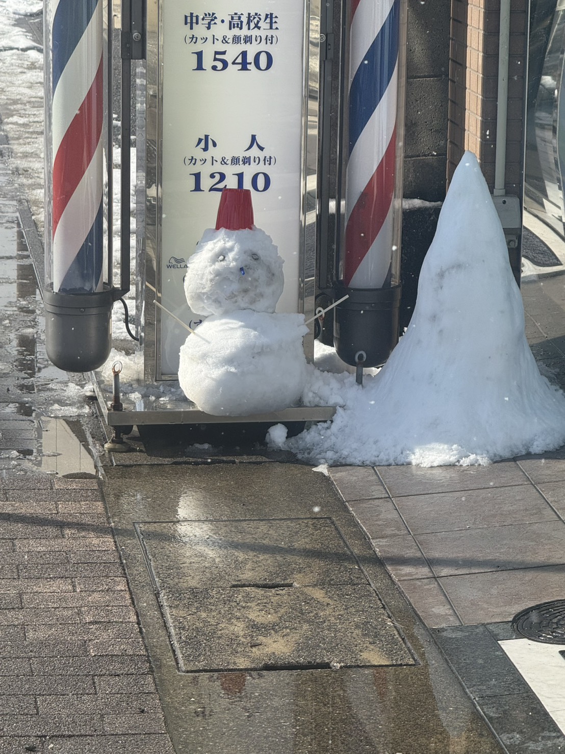 キャンパスのビルの下にある床屋さんの前には可愛い雪だるまが置いてあり、朝から癒されました☃