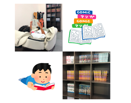 キャンパス漫画喫茶化計画、始動 2022-09-17 日常 KG高等学院 小山 キャンパス4Fに新しく「リラクゼーションルーム」ができました マッサージチェアと漫画がそろってますので自由に使ってください! みんなで長く使えるよう、丁寧に扱ってもらえたらうれしいです☺ また、置いてほしい漫画があれば、先生にタイトルを教えてください もしかしたら本棚に追加してもらえる…かも? 一覧へ