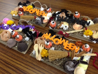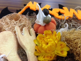 粘土で作ったスイーツやパンプキンやコウモリなどのHalloweenアイテムを