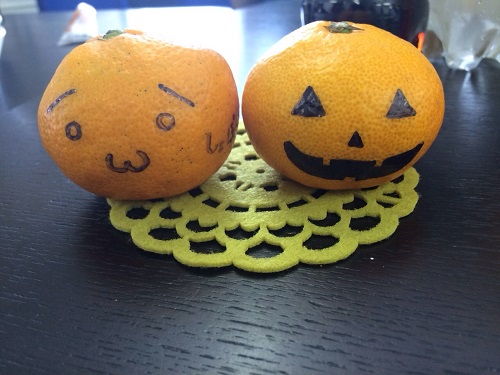 ☆そして、女子生徒作、ミカンのジャック・オー・ランタン かわいいでしょ♡