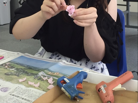 そしてブリザーブドフラワーを1枚ずつ外していき、グルーガンで1枚ずつ
