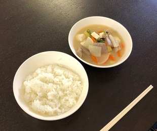 11月最初の給食は、寒い季節においしい豚汁とごはんでした。