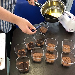 冷蔵庫で冷やしたら、一番上にココアパウダーをかけて完成です。