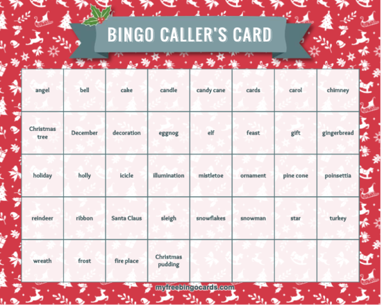 今回はクリスマスにちなんだ単語を使ったビンゴとなります