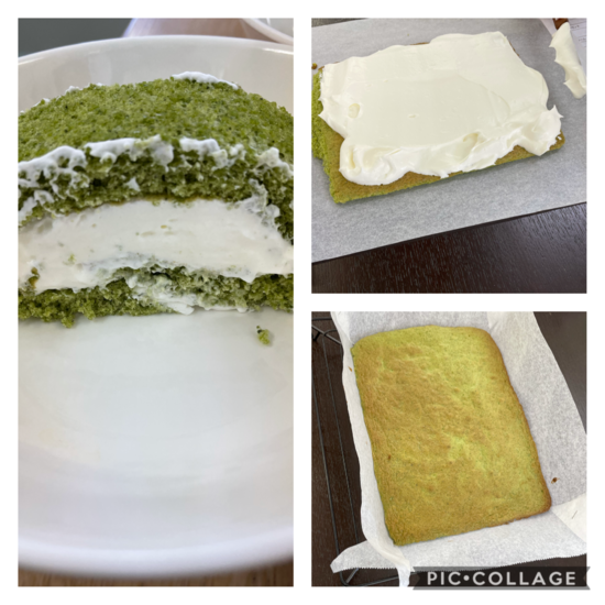 先日は、抹茶のロールケーキをキャンパスで作りました。