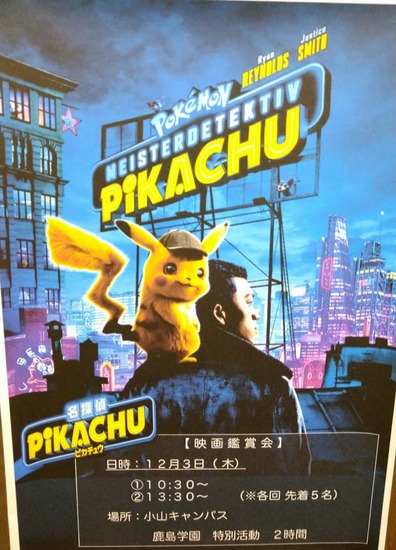 映画観賞会のお知らせ 2020-11-25 お知らせ KG高等学院 小山 12月3日(木)に映画観賞会を実施します。 『名探偵 ピカチュウ』を10時半~ 13時半~ 5人定員の予約制となっていますので、参加したい生徒さんは連絡くださいね。 特別活動2時間となります。 一覧へ