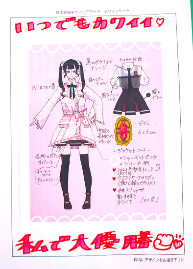 提出された作品はコンテスト(日本制服デザインアワード)へ出展します!
