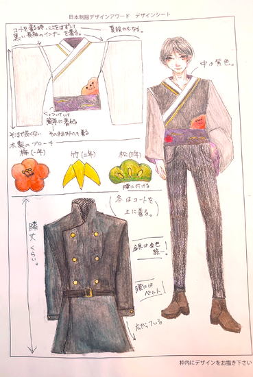作品解説:この制服は日本をより現代府に着やすくデザインした制服です。