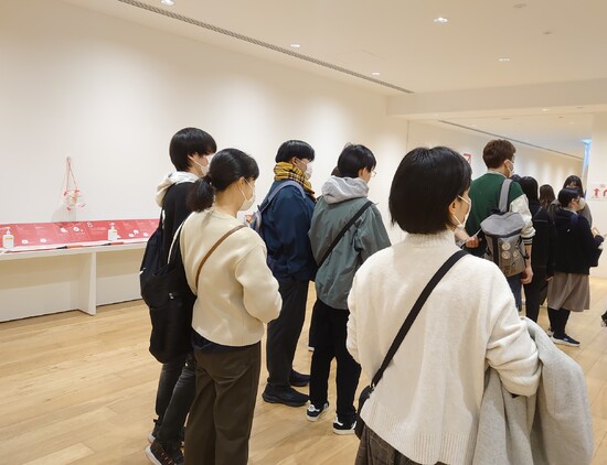 ミュージアムショップの前でさいたまキャンパスの記念写真だよ。