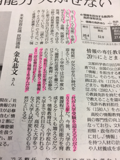 『国語』や『英語』と並ぶ基礎的な科目として、追加されるそうです。