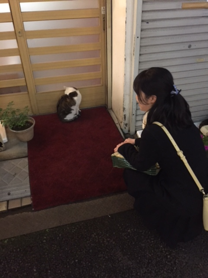 道端のネコと会話を楽しんでいる方にはじめて出会いましたよ・・・