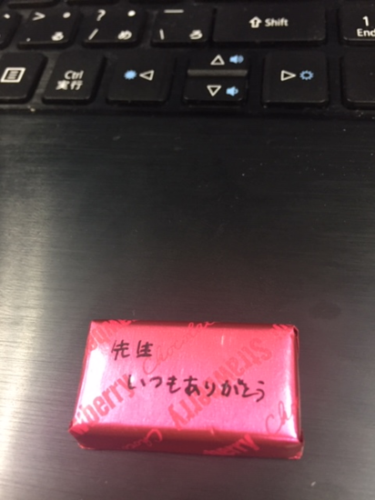 (メッセージ付チョコレート!どなたからでしょうか・・・)
