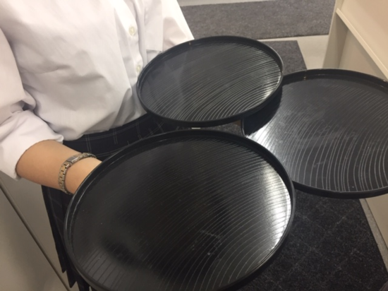 (おぼんで仮想お皿として特訓中!)