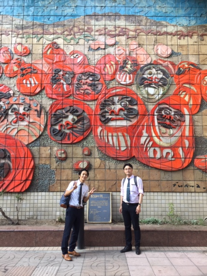 (高崎といえばダルマ!?池田キャンパス長といつもの井上で記念撮影~)