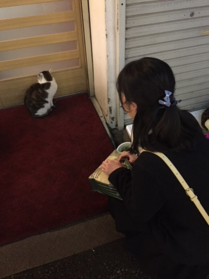 (道端での猫ちゃんとのトークショー!このコミュニケーション力!)