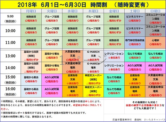 6月の時間割です。コミュニケーションをみがいて、仲いい人と、さらに仲良くなりましょう