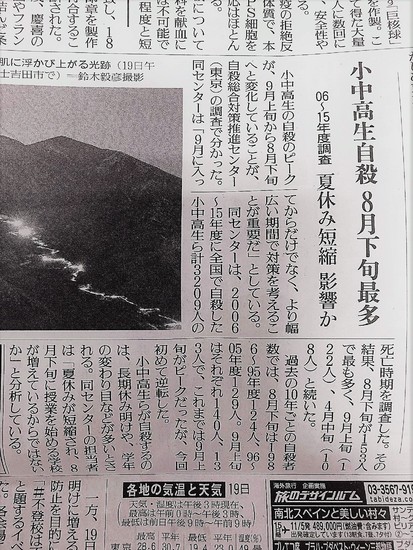 毎年、9/1あたりの前後で、小中高生の自殺者が急増します。