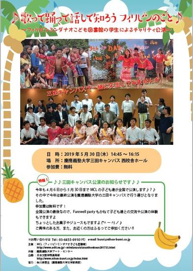 今回の特別活動はフィリピンミンダナオこども図書館の学生によるチャリティ公演での国際交流です。