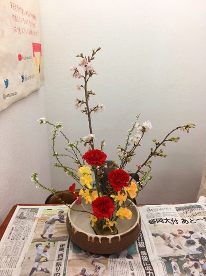 カーネーションと桜?!この組み合わせははじめてです…!