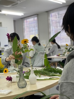 華道体験 2023-07-23 お知らせ 志木キャンパス 7月21日に華道の先生に来校して頂き、華道体験を行いました。 同じお花や花器を使っていますが、活けるひとによって異なる作品となるので面白いですね。 次回の華道体験は、冬にお正月の花飾りを教えていただく予定です! お楽しみに~ 一覧へ