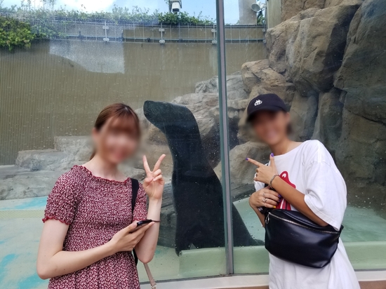 飼育員のお姉さんに、スリーショットが撮れるようにしてもらったり!