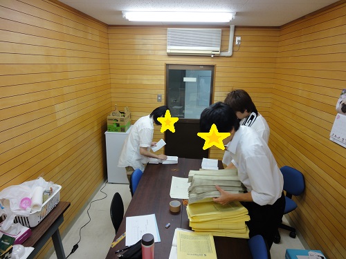 大量に書類が届いた日にキャンパスの生徒さんたちにお手伝いをしてもらっています。