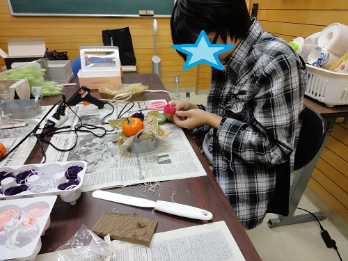 今回のテーマはハロウィンです。木の実にかぼちゃに材料はさまざま。