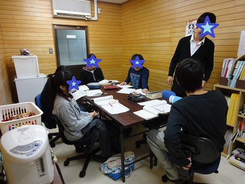 いつもの個々の机ではなくて、みんなで互いに分からないところを