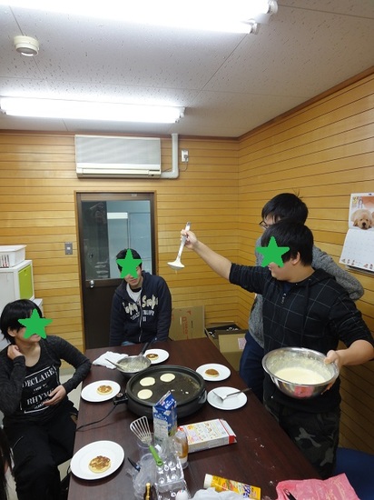 さぁ、卵を片手で割れるか??ホットケーキミックスをこぼさずにボールに入れるか高校生なりのホットケーキ作りでした。