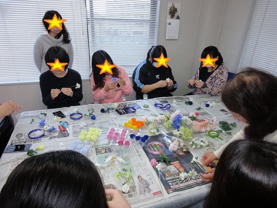 プリザーブドフラワーは初めての生徒もいれば、何度もやっているベテランの生徒もいます。