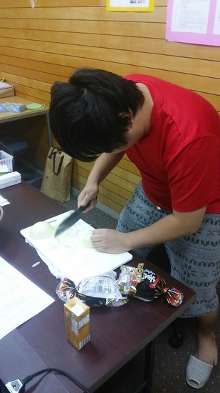 また、玉ねぎを切った女の子。目が痛い(>_<)