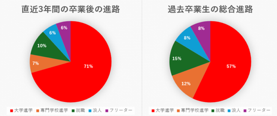 下記は当会の卒業生の進路データです。やはり大学や専門学校等に進学するのが人気です。