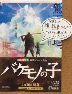 今回は、6月に観劇する劇団四季「バケモノの子」に卒業生がキャストに選ばれたので「エンターテイメント業界 舞台編」を行いました。舞台は演者だけで成り立っているのではないことを知り、より楽しく観劇しようというのが今回の目的です。
