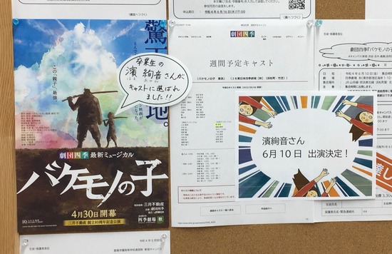 新宿キャンパス卒業生の濱絢音(はまあやね)さんが、劇団四季「バケモノの子」のキャストに選ばれました!