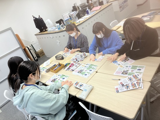印刷したリーフレットを心を込めて折っています。