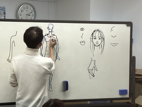 ファッションビジネスカレッジ東京の濱口勝彦先生によるデザイン画デモンストレーションとステンシル体験を行いました。