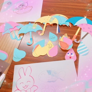テーマは梅雨…ということで参加してくれたみんなに傘と雨粒の飾りを作ってもらいましたよ~!