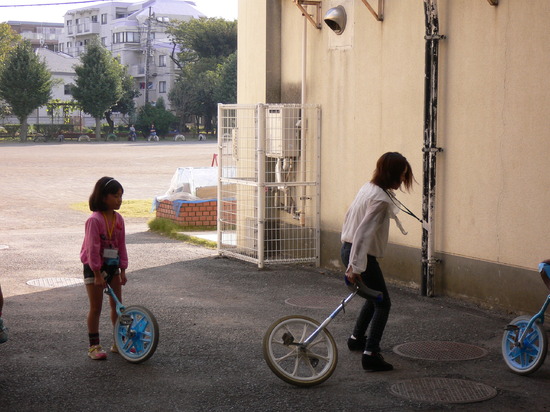 参加生徒からは「私は小学生に間違えられたりするから、子どもには直に溶け込める」と自信たっぷりの発言もみられました。はたして、その発言の如く子ども達に溶け込めた様子でアッ!という間に時間は過ぎました。子ども達に懐かれて、帰りに一緒に帰ろうとせがまれたりと人気者になれましたね。