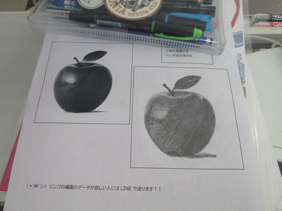 イラスト体験では、リンゴのイラストに光と影を付ける実習をしました。