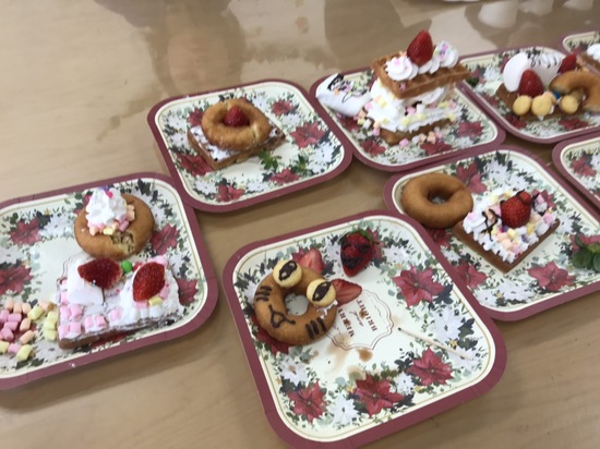 ドーナツをホイップクリームやカラーチョコレートでデコレーションしたり、