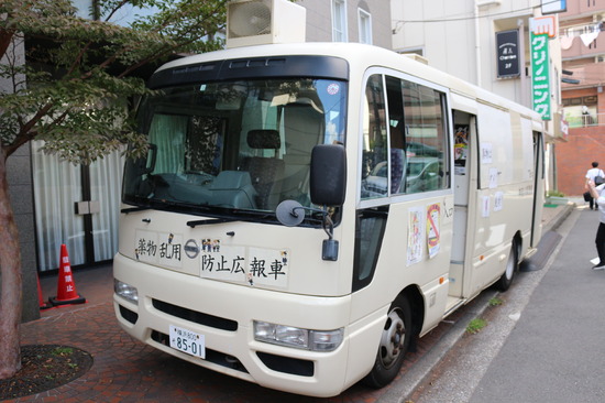 講義の後には、薬物乱用防止広報車へ移動して、資料見学を行いました。