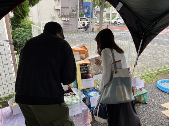第1回目は戸塚キャンパスの生徒たち6名が事前準備から参加しました。事前準備の値札・POP作りは青葉キャンパスの生徒たちにも手伝ってもらい、工夫を凝らしたデザインで、とおりがかりの方々の目をひいていました。