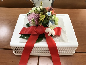 体験終了後、初日に作ったお花をキャンパスに届けてくれて、今でも飾ってあります。