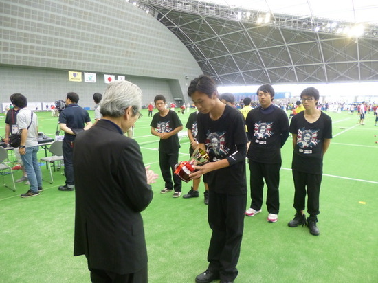 優勝トロフィーを授与される岩手キャンパスの浅沼澪門くん