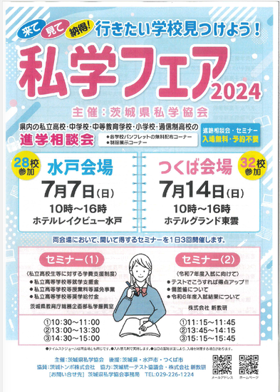 茨城県私学フェア2024(つくば・水戸)のお知らせです!
